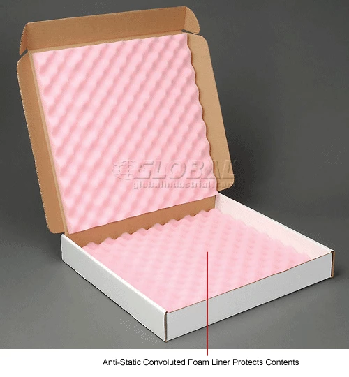 These antistatic foam shippers are designed for static-sensitive and fragile shipments. They are made of convoluted foam and 200 lbs tested corrugated material to keep products firmly in place. They come assembled with glued foam top and loose bottom.