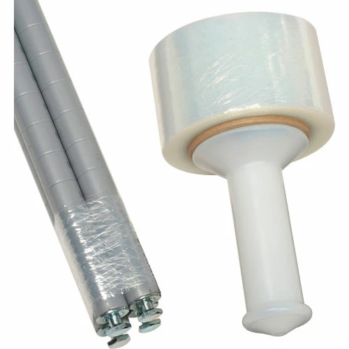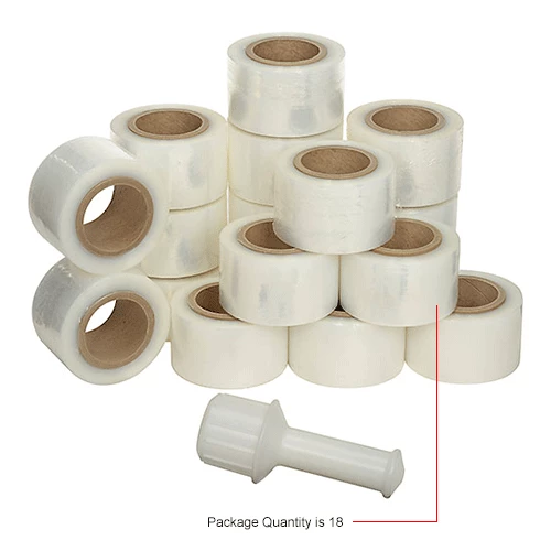 The banding stretch wraps surround small bundles or large pallet loads to unitize shipments. The self-adhesive cast wraps stick only to themselves without harming products or leaving sticky residues. The wraps are easy to dispense and don’t require expensive machines to apply. These wraps come with a durable plastic dispenser that is easy to maneuver when hand wrapping. They are sold as 18 rolls per case.