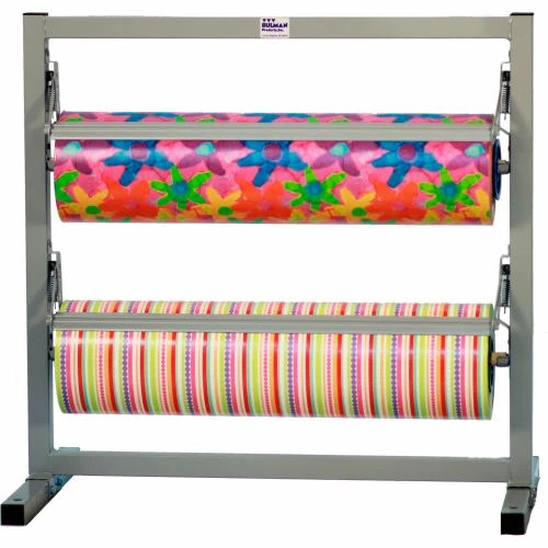 This two deck tower is ideal for countertop use or on work floor. It holds up to 9″ diameter rolls in various widths, weights and thicknesses. The hub adapters and metal dowels are available if using various widths of paper on one rack. There are optional heavy duty casters available (2 of which can lock). Optional serrated blades are also available (T342R). It is finished in durable gray baked powder coat. The tower is easily assembled and ships k.d via UPS.