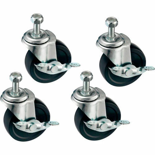 Need to roll your Global Industrial Paper Dispenser around your warehouse? No problem. The Global Industrial Vertical Paper Dispenser Caster Kit has what you need. This set is easy to install and once attached, will add extra height to the dispenser. Caster kit wheels are made of strong polyolefin plastic material for long lasting durability and use.