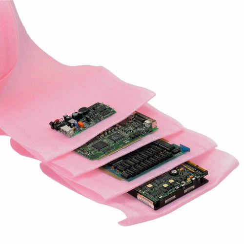 - Pink antistatic foam protects sensitive electronic components from static discharge