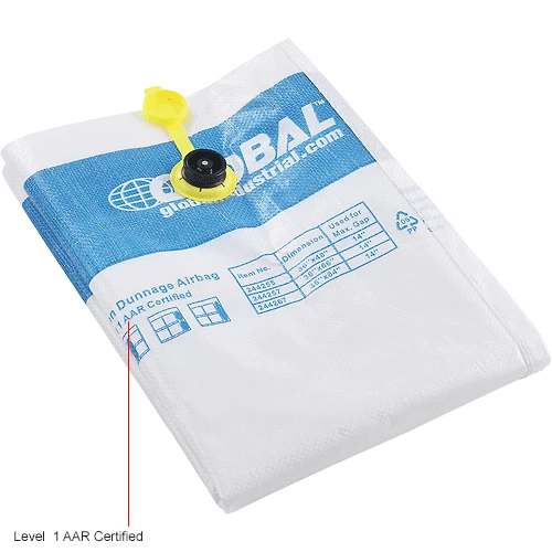 These dunnage airbags are designed to absorb impact and provide content protection for packaging, distribution, warehouse, and other applications. The recycled, high strength polywoven construction is moisture and pressure resistant, making these airbags both cost effective and durable for reliability. The bags include a push and lock valve for rapid deflation and air leakage prevention. The inflator quickly inflates airbags ensuring consistent pressure levels (sold separately). AAR level 1 certified.