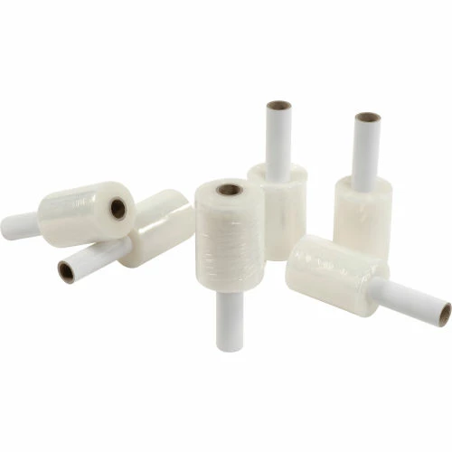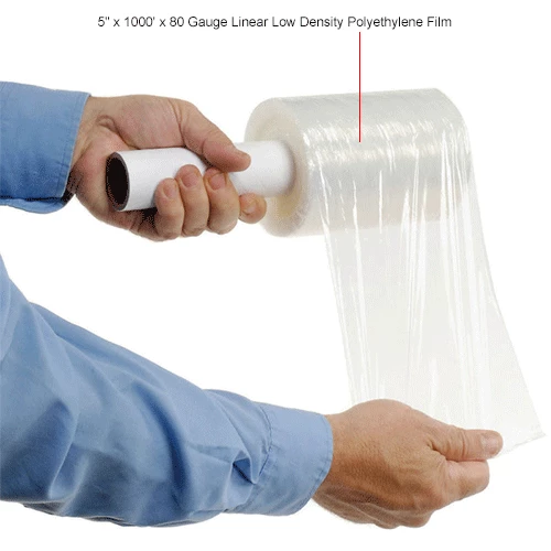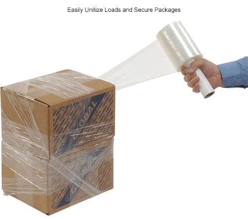 When looking for simple and cost effective means to secure transportation of your products, the Global Industrial™ Stretch Wrap Film with an Extended Core Handle is a reliable solution for many types of industrial packaging processes. The strong 80 gauge, low density polyethylene film conforms and squeezes easily around products ensuring each item is wrapped tight in a completely elastic layer. The internal 1″ core is extended beyond the film to create convenient handles for the user at no additional cost. This film has exceptional puncture resistance while retaining the highest pre-stretch level, making it a primary choice for products with protruding edges. In addition to having a higher resilience to tear and puncture, the cast stretch film unwinds much quieter than blown film. It is also easier to stretch and control the gauge of each layer as it is applied. Package quantity is 12 rolls. Clear finish allows superior transparency to detect wrapped items easily. Film is 5″ wide and 1000′ long. 1 Year Limited Warranty.