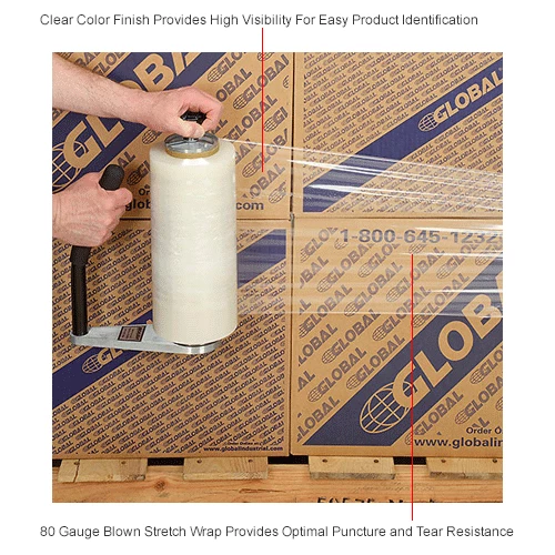Aggressive cling and excellent puncture and tear resistance are what you’ll get when you order this blown stretch wrap. They are perfect for unitizing irregular shapes and will withstand the most severe protrusions, sharp edges, and shipping hazards without compromise. Clings only to themselves and will not harm products or leave sticky residues. These crystal clear wraps offer easy product identification. They come wound on a 3″ core. These wraps are sold as 4 rolls per case.