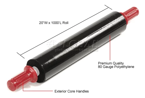 Be the first to review “Western Plastics Stretch Wrap W/Extended Core Handle, Blown, 80 Gauge, 20"Wx1000’L, Black – Pkg Qty 4” Cancel reply